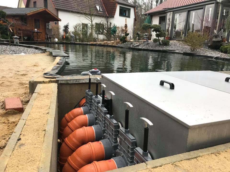 DIE KOMBINATION AUS TEICH, POOL UND GGF. FISCHTEICH, STELLEN EINE ERHÖHTE ANFORDERUNG DURCH ALS DIE ZU BERÜCKSICHTIGENDEN TEILSEGMENTE INKL. SPEZIELL ANGEPASSTER FILTERTECHNIK.